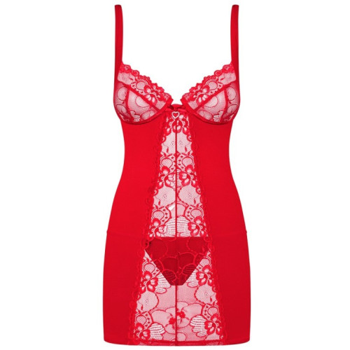 CAMISA DE NOITE E TANGA HEARTINA OBS VERMELHA