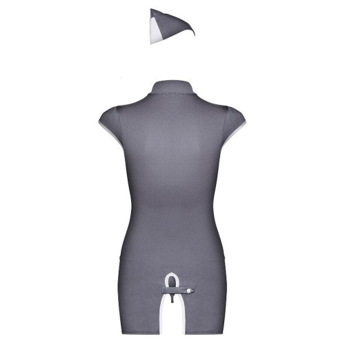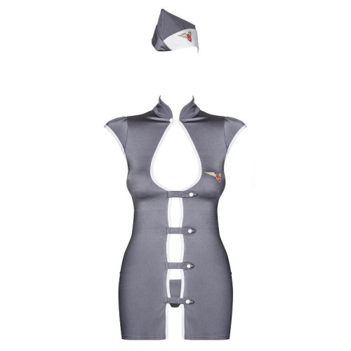Não esconda o seu lado mais divertido. Tem agora tudo o que precisa para realizar as suas fantasias. Uma fantasia muito sexy, que vai de certeza aquecer as suas noites. Vista-se de hospedeira, com este completo conjunto que inclui um vestido com aberturas na frente, um chapéu e uma tanga a combinar. Vista sensualidade e originalidade, deixando-o louco de desejo. Marca líder, repleta de erotismo e sensualidade com modelos únicos que enaltecem ainda mais o corpo das mulheres.