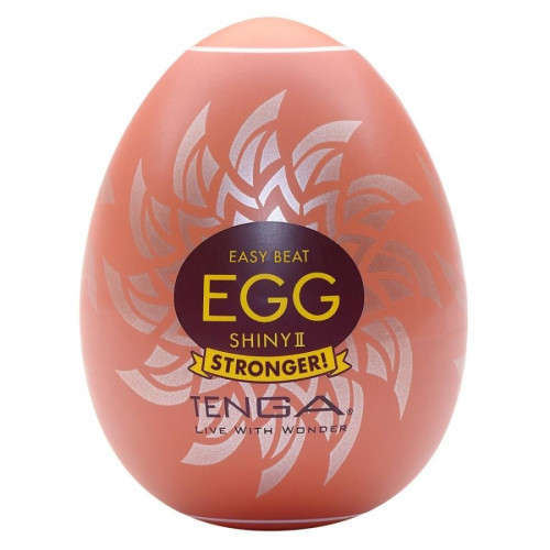Masturbador descartável Egg Shiny II Stronger da Tenga com uma nova textura estimulante intensa em forma de estrela no interior para sensações particularmente fortes. A manga ultra-flexível do masturbador está localizada na discreta caixa em forma de ovo e é usada juntamente com o lubrificante incluído durante a masturbação.