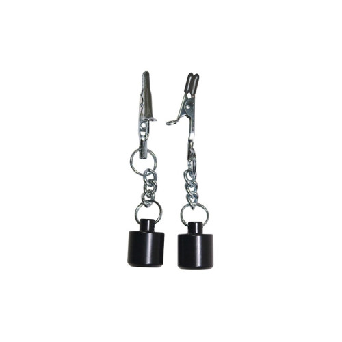 Encha os seus mamilos de prazer com estas pinças para os mamilos com pesos de 50 gramas. Basta apertar a pinça de mola sobre o mamilo. As pinças são revestidas com borracha, para ajudar a aliviar o aperto, enquanto o peso resistente de metal permite outras possibilidades prazerosas! Pode utilizá-las também no clitóris e testículos.