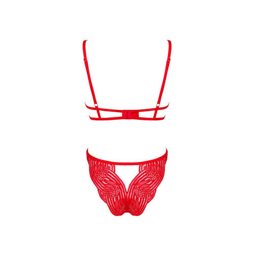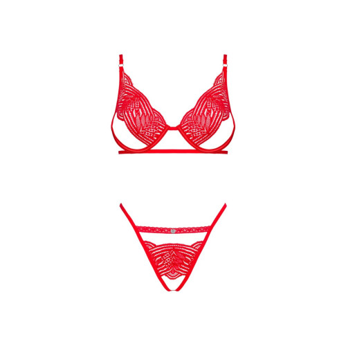 Está pronta para uma noite muito longa e quente no seu quarto? Se sim - não se esqueça de trazer consigo este conjunto super sexy da colecção Mellania. Os cortes picantes e o estilo arrojado permitem-lhe satisfazer os seus desejos mais íntimos, e o vermelho suculento acenderá os sentidos! A renda extravagante acrescenta elegância e envolve suavemente o corpo, e as cuecas com uma virilha aberta levam os jogos maliciosos a um nível muito mais elevado!