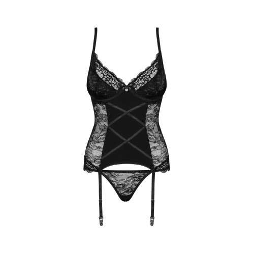 Gosta de vestir nova lingerie? Então dê uma vista de olhos ao corpete Laurise que desperta os sentidos com o seu design clássico e cor preta! Deixe o seu homem ver-la vestir com ele. Já sabe que é hora de descobrir quão agradável é vestir renda sensual que acaricia delicadamente o seu corpo...